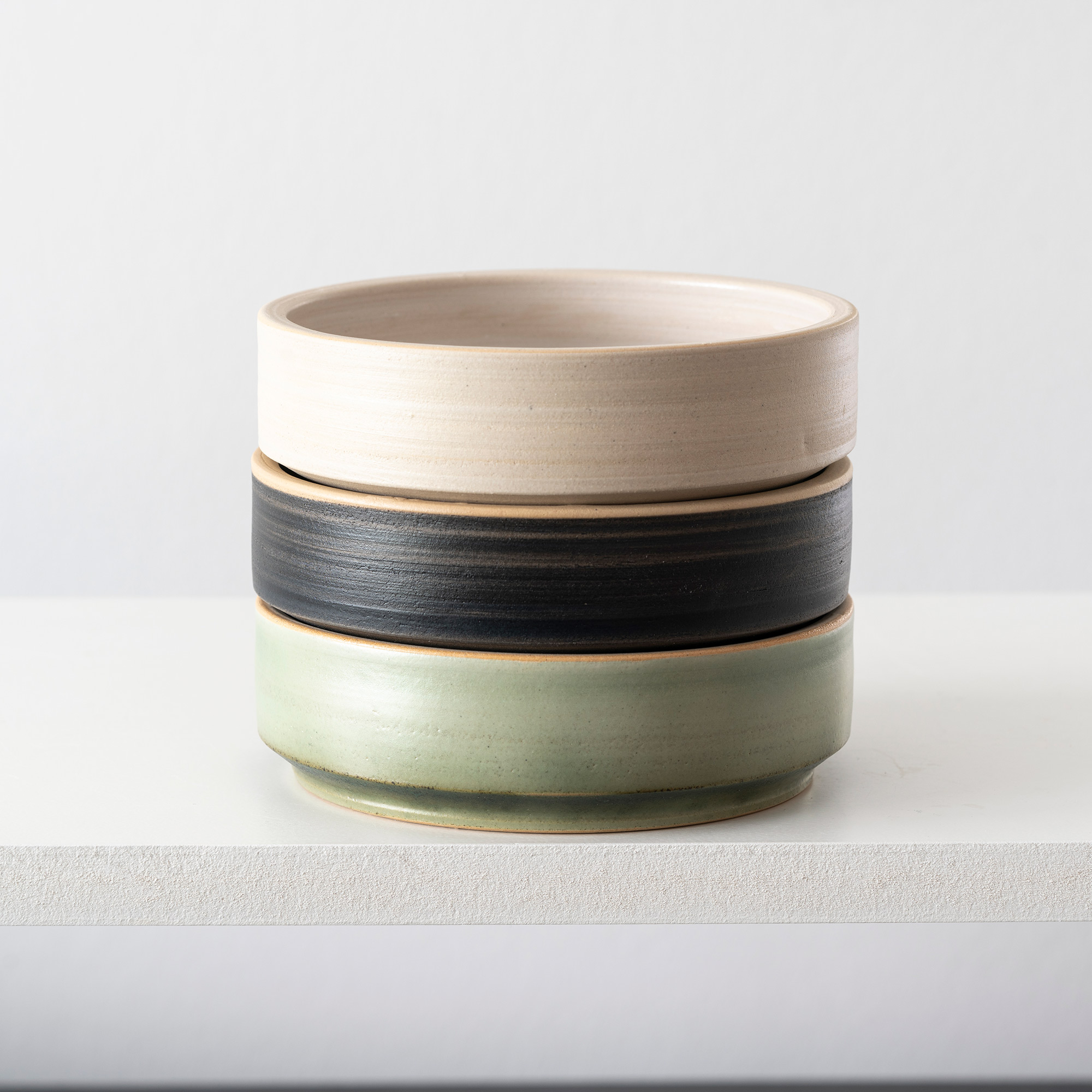FLAT BOWLs, matt copper green, matt black, matt nude
