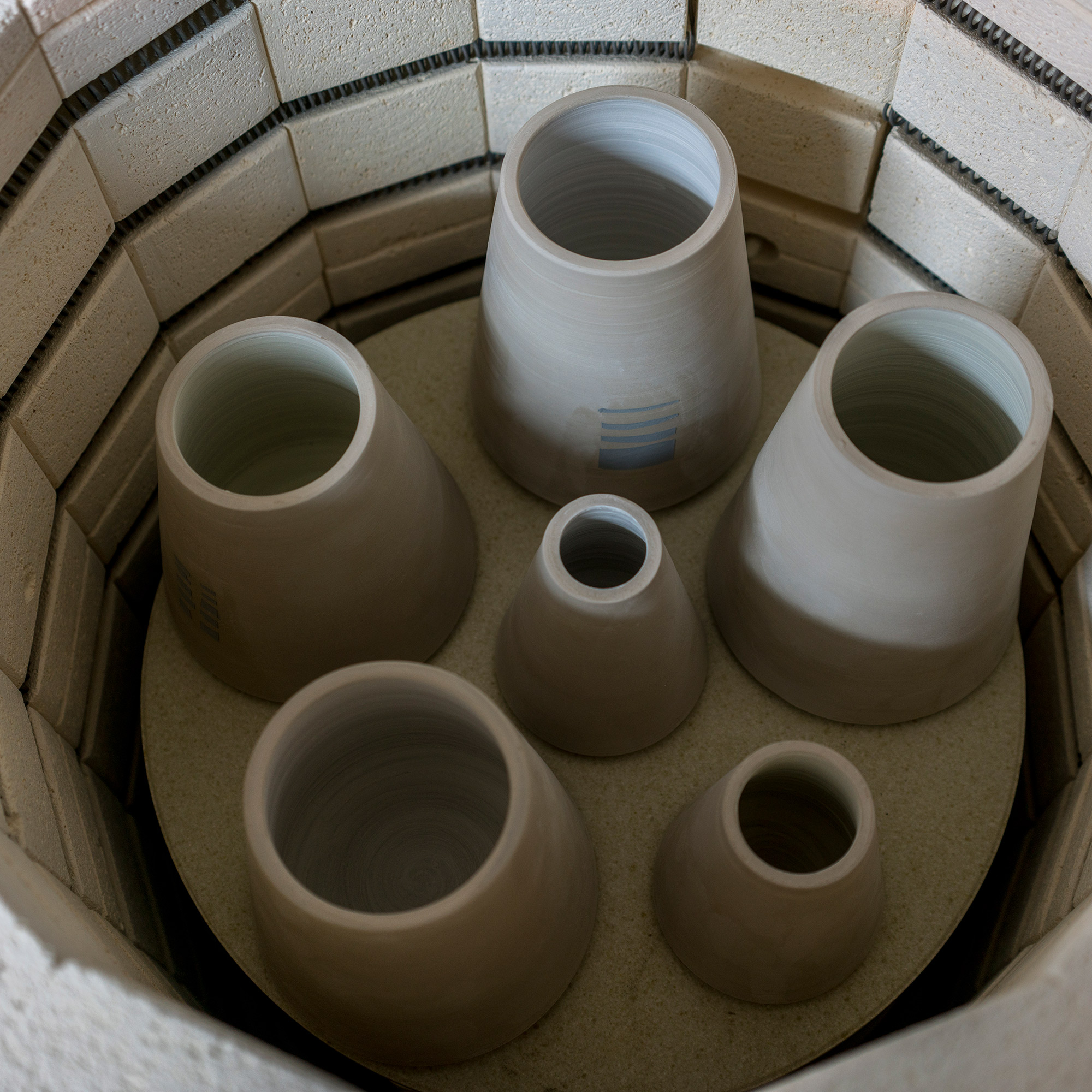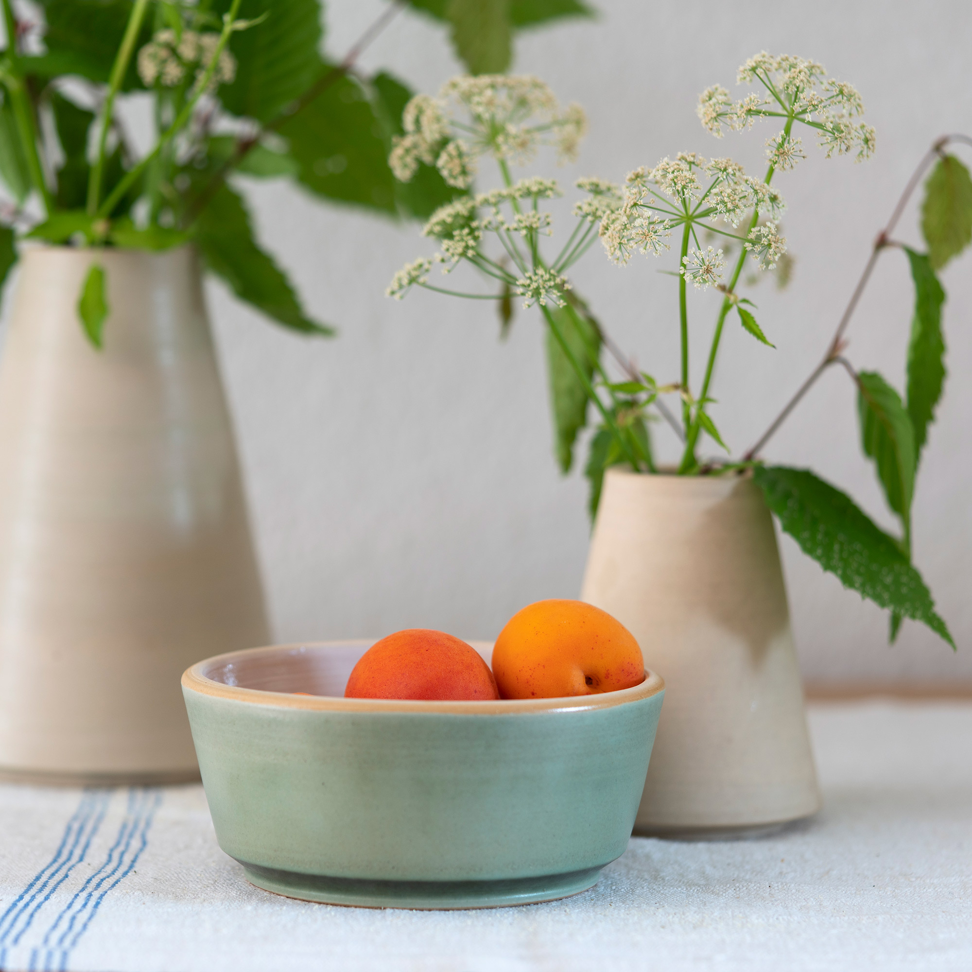 Our vases, like all our vessels, show a straight outer contour. This is inclined upwards towards the middle to safely hold a bouquet of flowers.