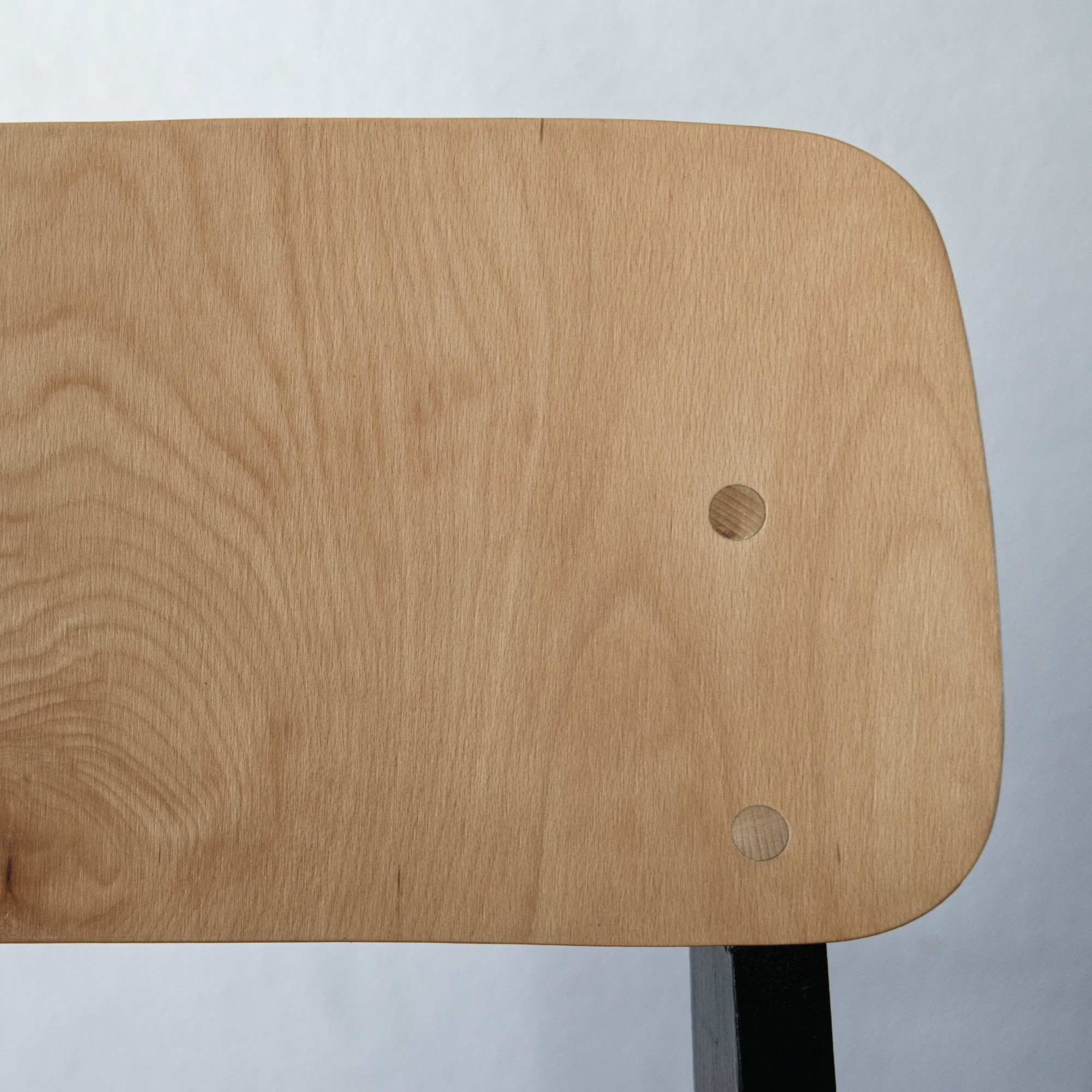 Overall, the chair combines a matt lacquered molded beech plywood seat and backrest with a matt black lacquered spruce frame. The design prioritizes comfort, durability, simplicity, and sustainability, resulting in a functional and aesthetically pleasing piece of furniture.
